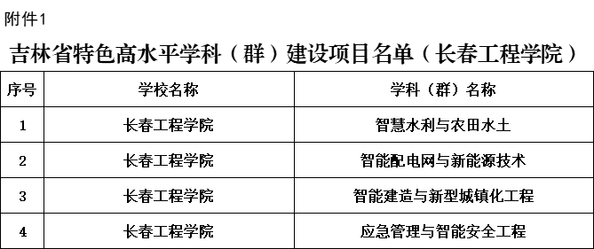 近日,吉林省教育厅公布《关于公布吉林省特色高水平学科(群)、专业(群)建设项目名单的通知》,我校智慧水利与农田水土、智能配电网与新能源技术、智能建造与新型城镇化工程、应急管理与智能安全工程4个学科(群)成功获批吉林省特色高水平学科(群)建设项目。